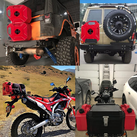 Gas container suitable for vehicle like motorcycle, dirt bike car utv atv boat trailer, or any other flat surface and takes up little space