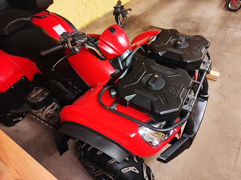 Gas container suitable for vehicle like motorcycle, dirt bike car utv atv boat trailer, or any other flat surface and takes up little space